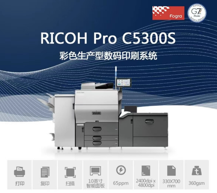 新型彩色生產(chǎn)型打印機Pro C5300S,具有許多增強功能,可以提供高圖像質(zhì)量、處理各種介質(zhì)并改善可用性。配置靈活,操作便捷,是高印量辦公用戶,圖文快印行業(yè),商用打印客戶的理想選擇。